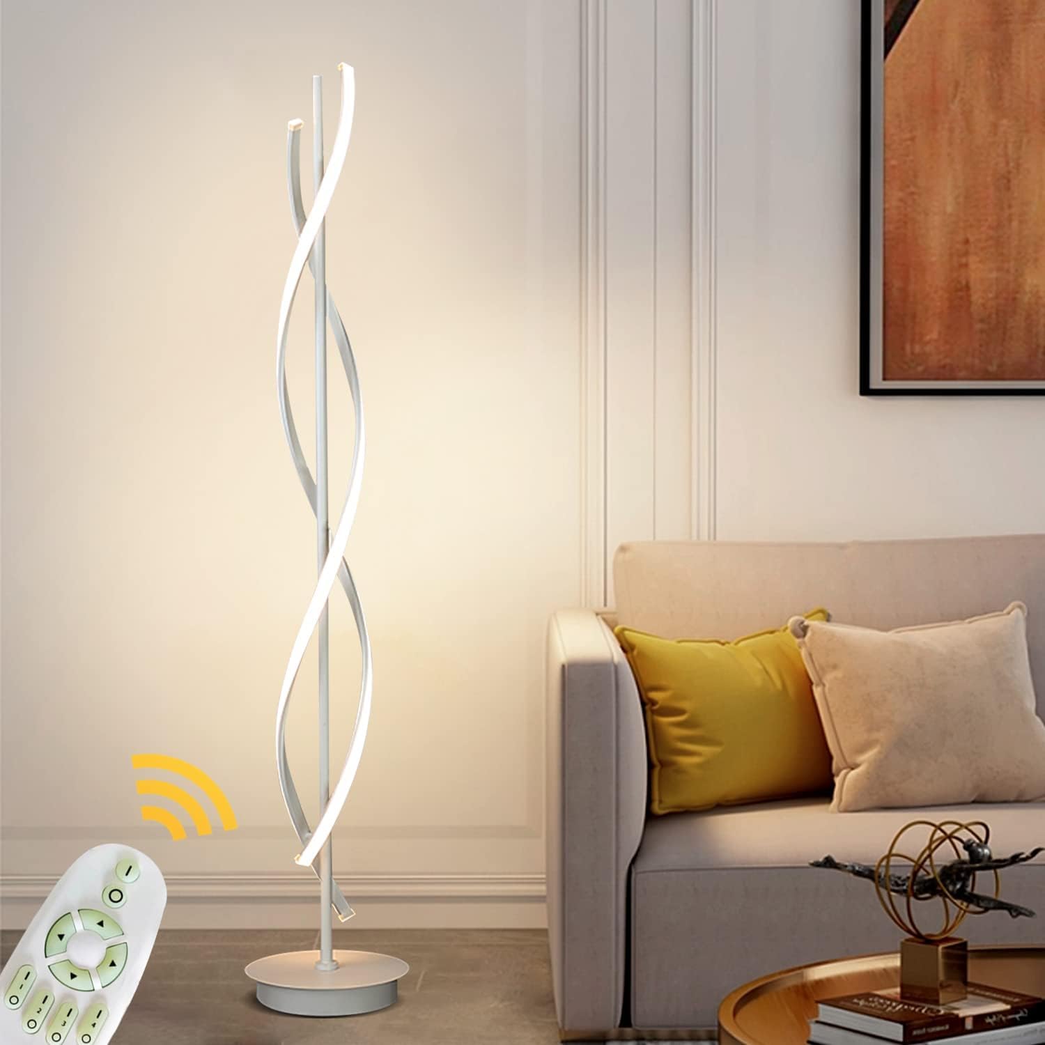 LED Living Room Floor Lamp, 52 W Floor Lamp Dimmable with Remote Control, 155 cm Modern Spiral Design Floor Lamp for Bedside Table Bedroom Office Reading White