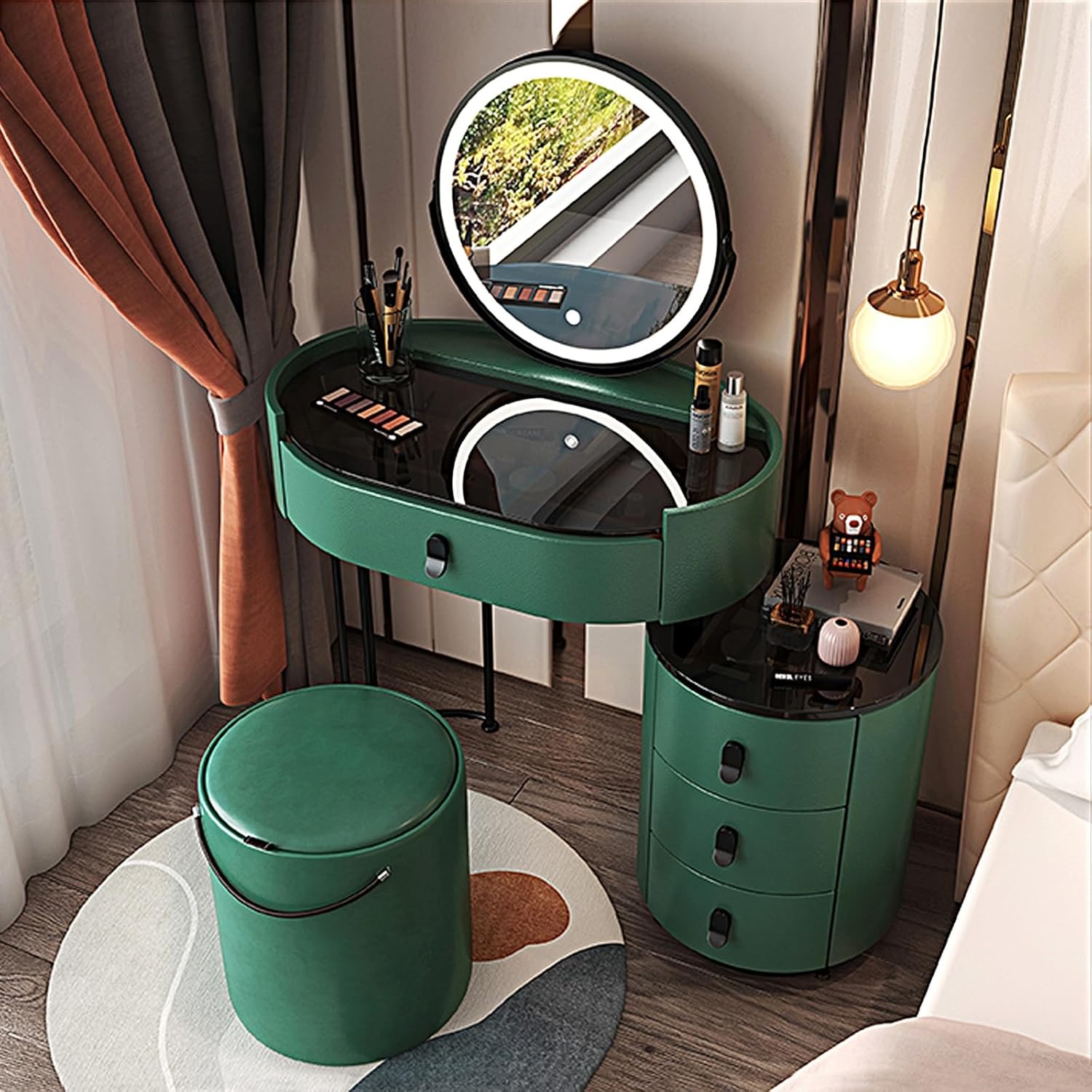 Set da scrivania illuminato con cassetto superiore in vetro e sedia, specchio per trucco in 3 colori, elegante tavolo da toeletta per donne verde
