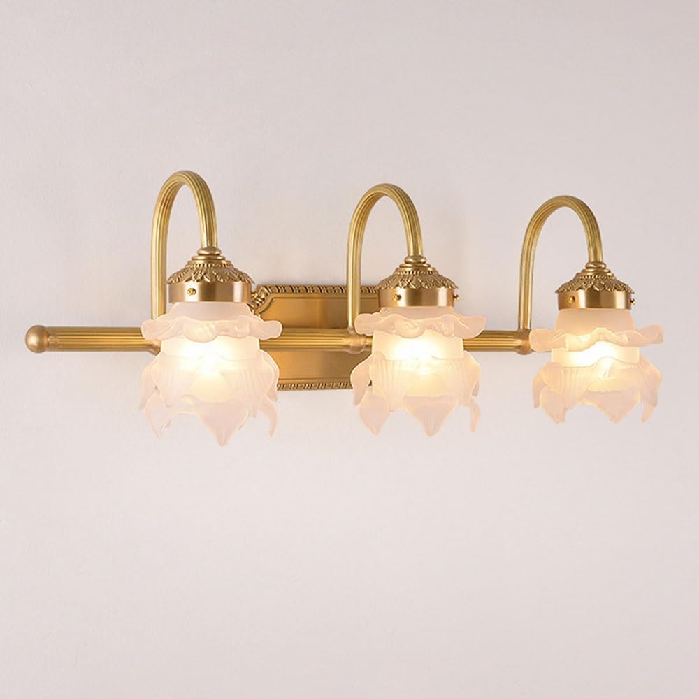 Lampada da toeletta in ottone da 55 cm Lampada da toeletta a 3 luci for bagno con paralume in vetro fiore di loto E27 Lampada frontale a specchio, applique da parete in rame