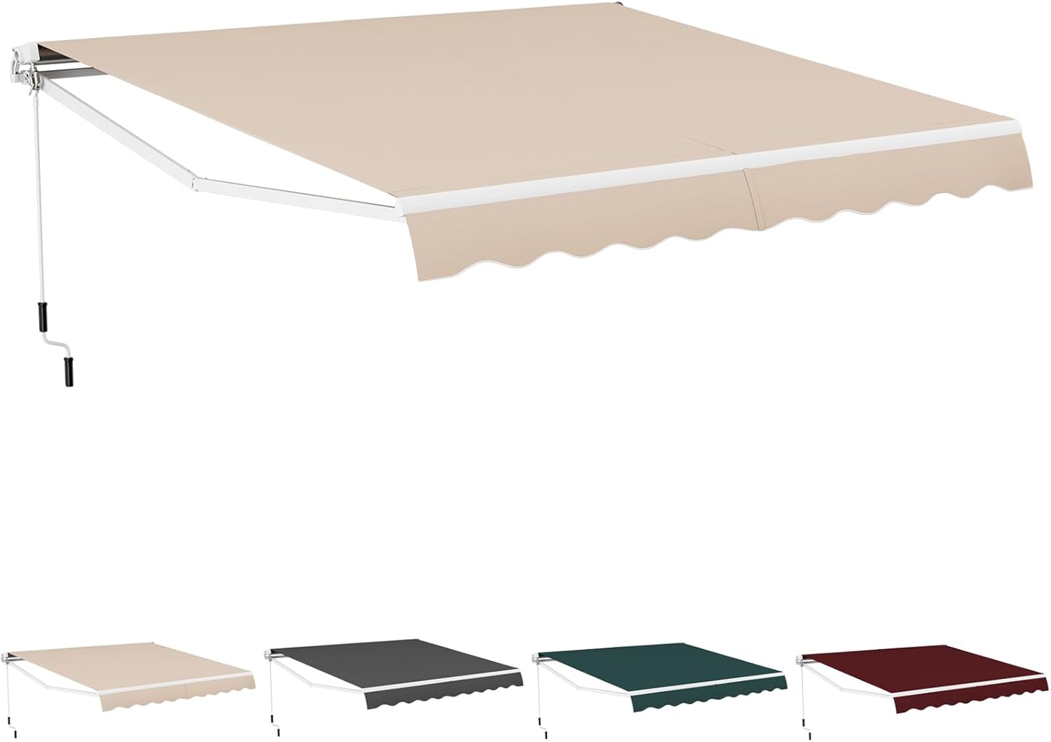 HOMASIS Roller Awning, Retractable Sun Shade Awning with Crank Handle, Angle Adjustable Balcony Curtain, Metal and PU Sun Protection for Garden and Terrace Beige, 4x2.5m