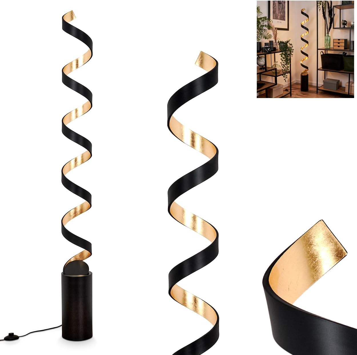 HOFSTEIN Rezat LED Floor Lamp, Metal Floor Lamp in Black/Gold, 30 Watts, 2400 Lumens, Light Colour 3000 Kelvin Warm White Floor Lamp with On/Off Switch on Cable