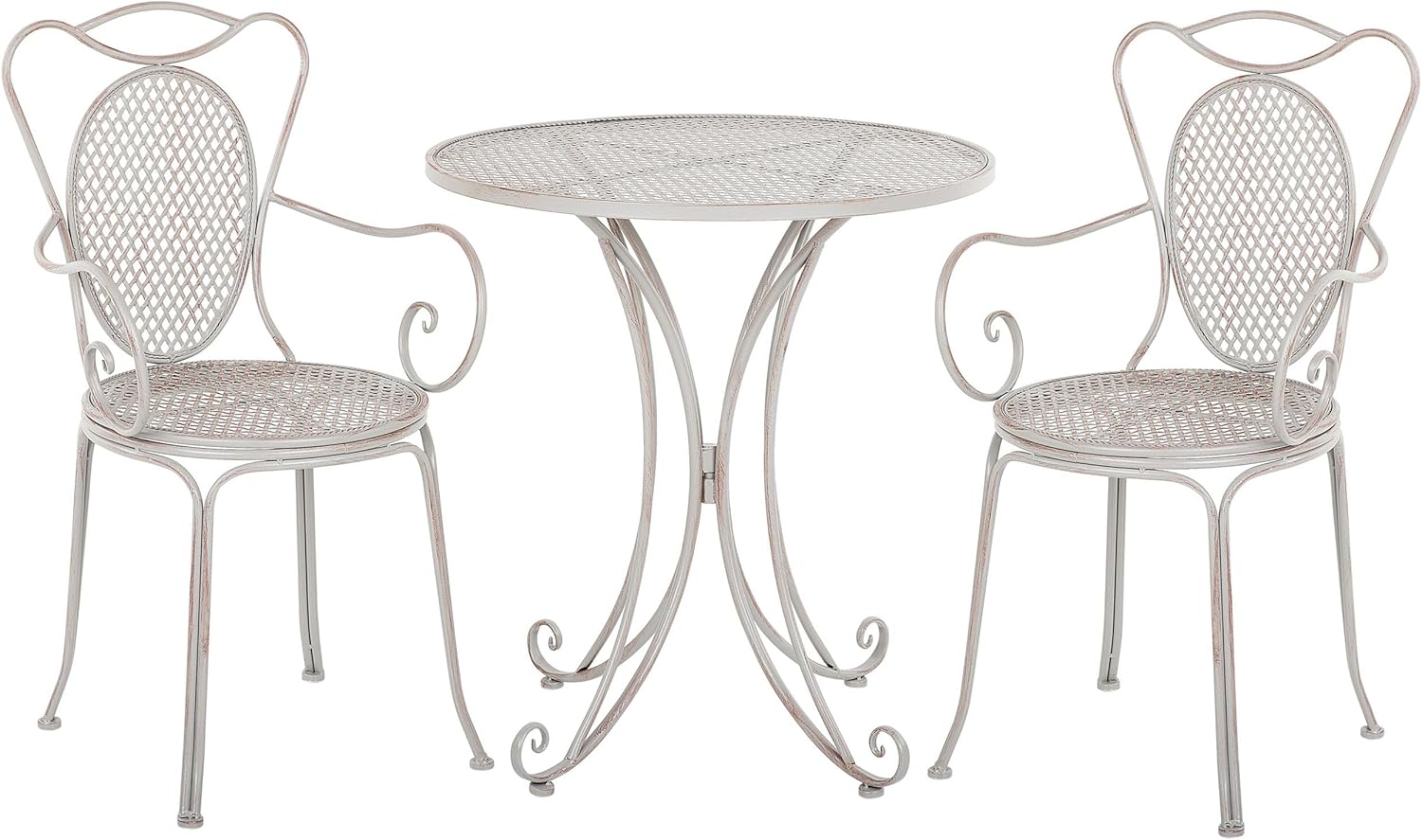 Outdoor Set of 3 Side Table 2 Seat in Iron Grey Shabby Chic